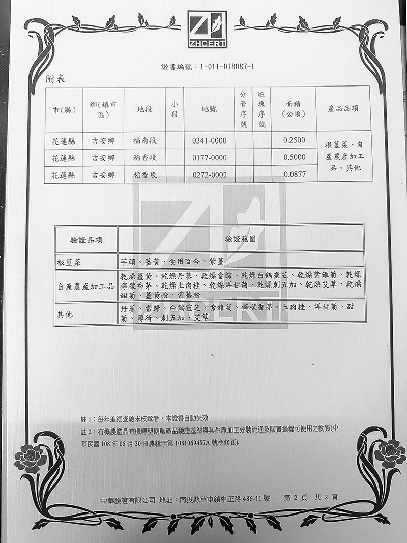 用年輕熱情的心,踏實溫暖又滿足的笑容,照顧著每樣作物,不管是丹蔘、當歸、白鶴靈芝、薑黃或是檸檬香茅、紫錐菊、洋甘菊、薄荷...等等,對待每樣親手栽種的作物都視如珍寶,邀您一起來試試,來自花蓮最天然養生的食品!
