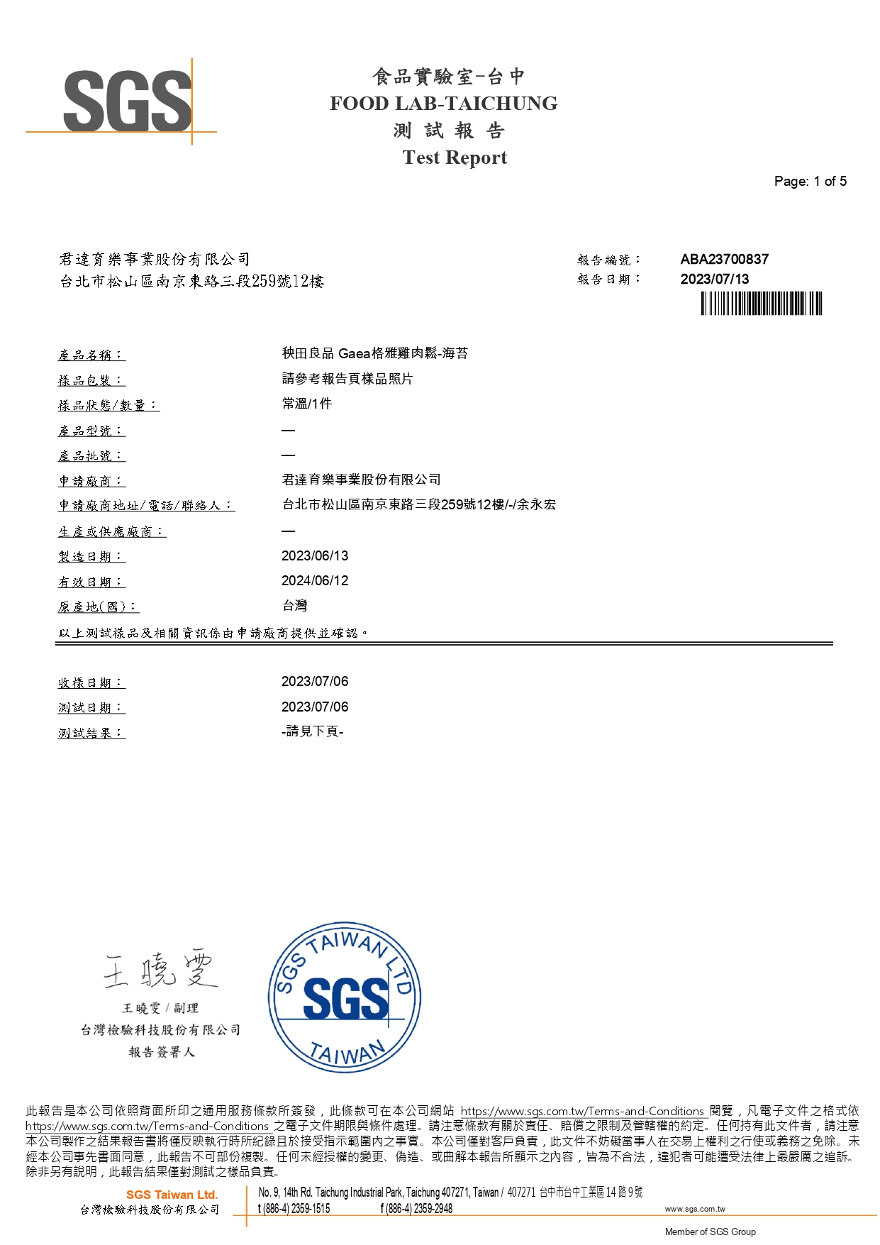 主要原料:格雅雞肉、豌豆粉、醬油、芥花油、砂糖、碘鹽、海苔
