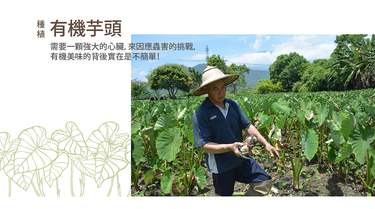 因此,為了讓有機芋頭在生長過程中能平安長大,有機農場投注了許多心力,